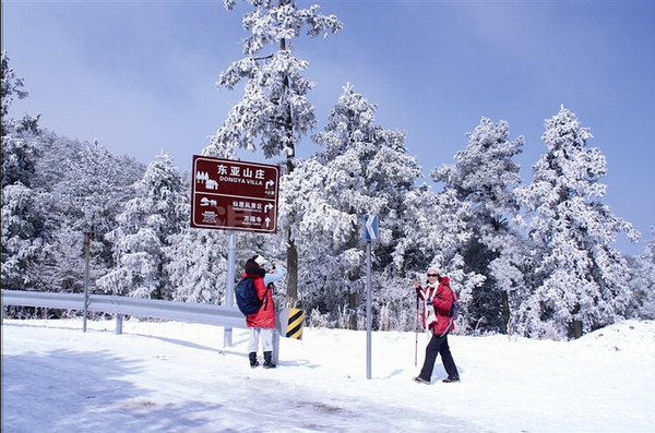 絡繹不絕來東亞山莊賞雪的游人